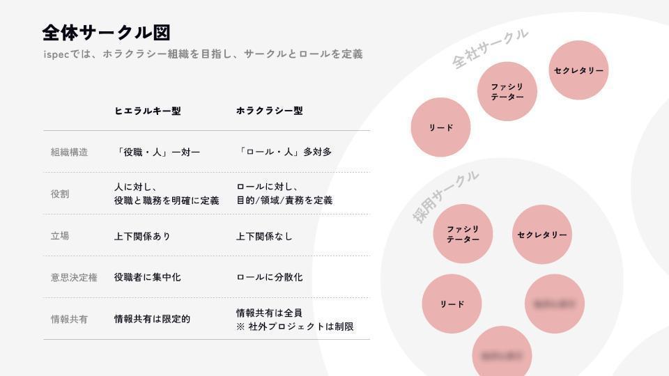 役割ごとにやるべきことを明確にしながらも、役割の垣根を越えて連携するホラクラシー組織やスキームを構築し、全社採用を実現しているispecさんのお話を伺いました。