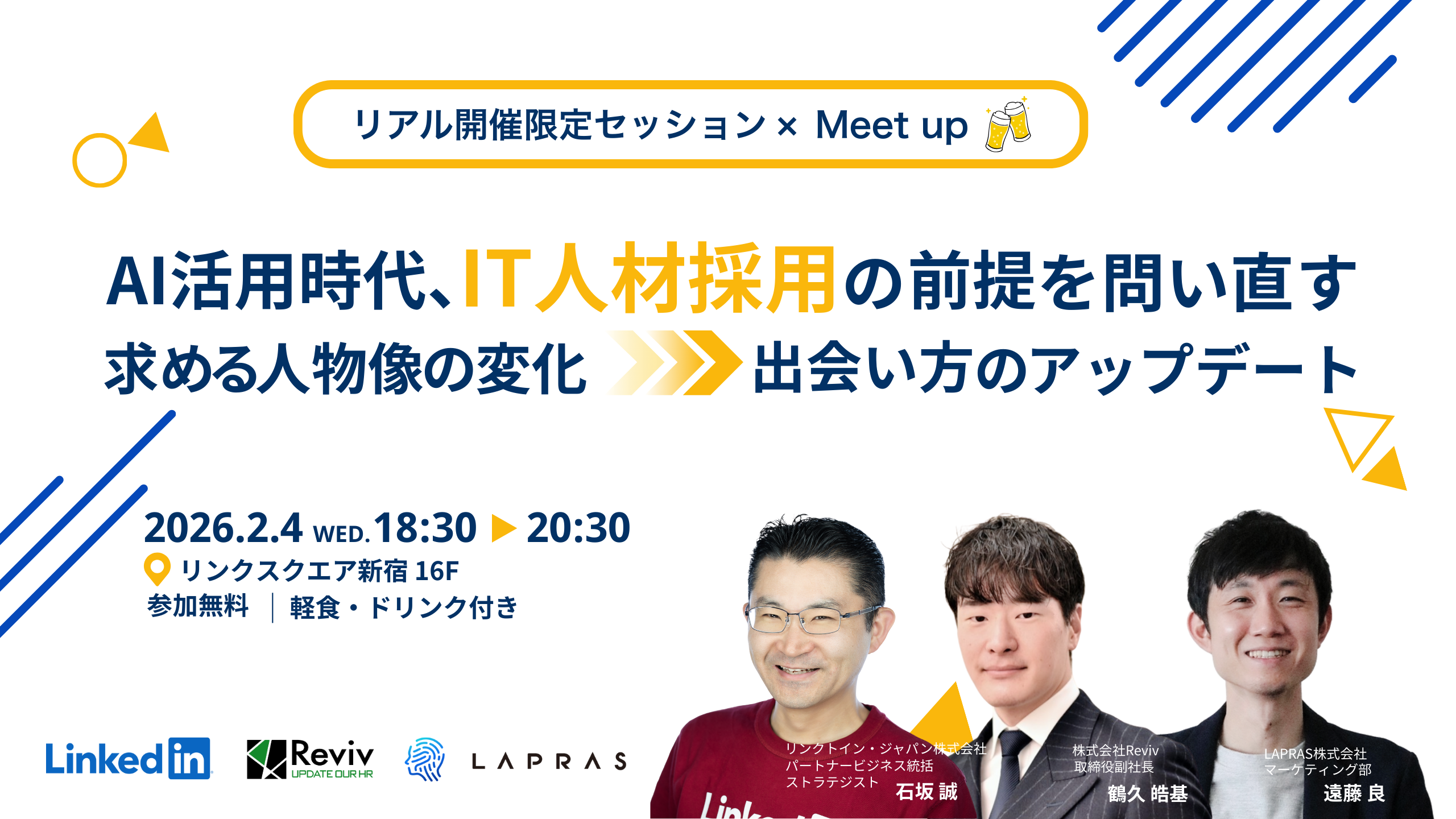 お酒や軽食を片手に、他社の事例も聞きながら、一緒に採用をアップデートしましょう!