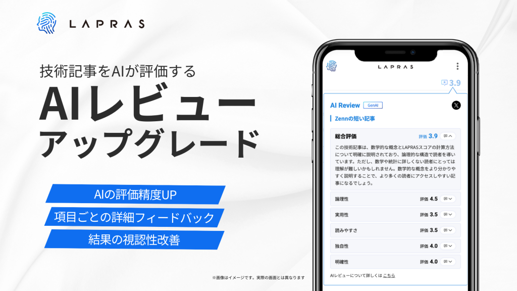 そこで「AIレビューの中身自体が進化している」ということがパッと伝わりやすいよう、これまで表示していなかった各評価項目の詳細なフィードバックまで見せられるようにUIを改修し、大々的にリリースする方針に切り替えた、という経緯があります。自分たちが面白いと感じたものを、世の中にもきちんと届けることで「LAPRASがまた、なにかおもしろいことやってるな」と感じてもらいたいという思いが形になった開発でしたね。