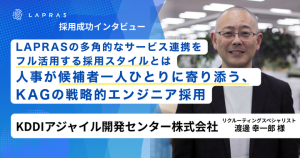 立ち上げ期の組織にとって、エンジニア採用 … 続きを読む 人事が候補者一人ひとりに寄り添う、KAGの戦略的エンジニア採用。LAPRASの多角的なサービス連携をフル活用する採用スタイルとは