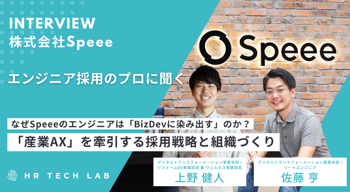 こうした中、株式会社Speeeは、AIで産業構造そのものを変革する「産業AX」に取り組んでいます。AI時代を見据えた事業戦略を牽引するエンジニアから「選ばれる企業」になるために、どのような採用戦略を掲げて取り組んでいるのか、事業部長の上野様と開発組織を率いる佐藤様のお二人に詳しく伺いました。